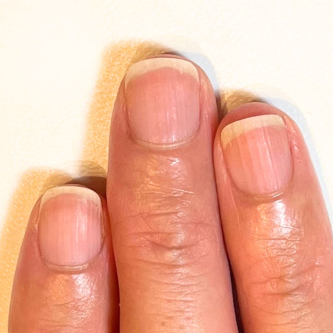 縦筋が目立っていた指先が、ツヤと透明感のある爪に