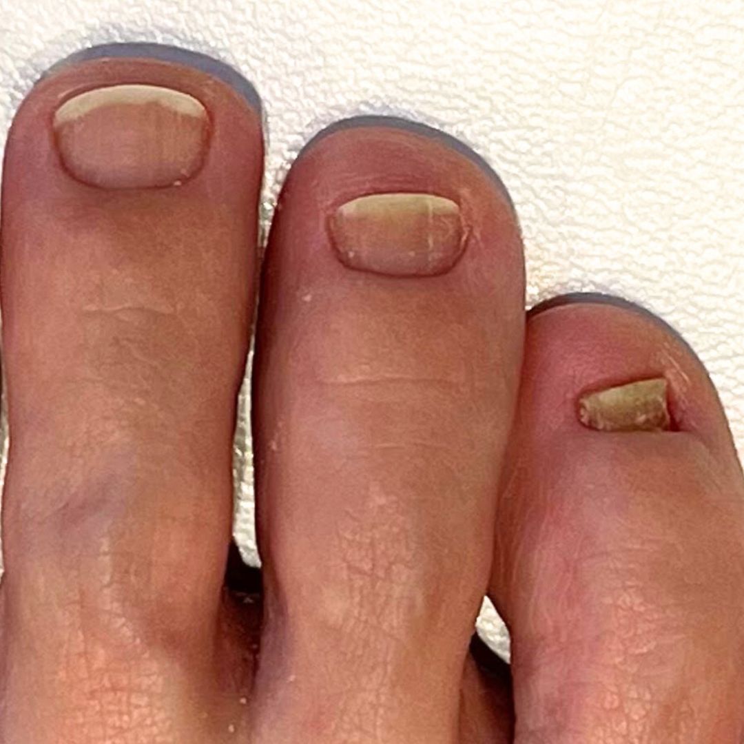 登山によるダメージを受けていた足の爪が、透明感ある指先へ