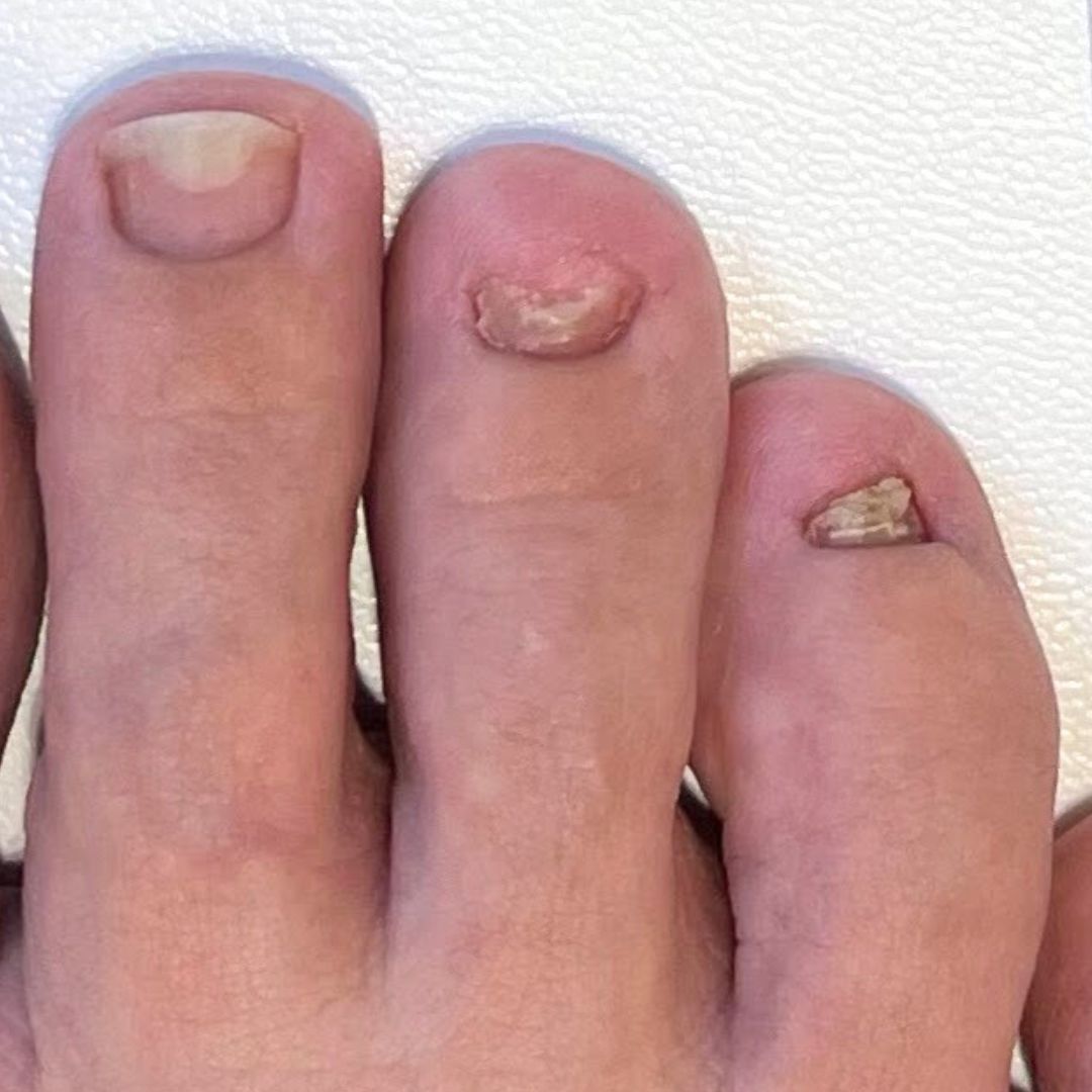 小さな三角形だったネイルベッドが足ゆびの先端まで成長