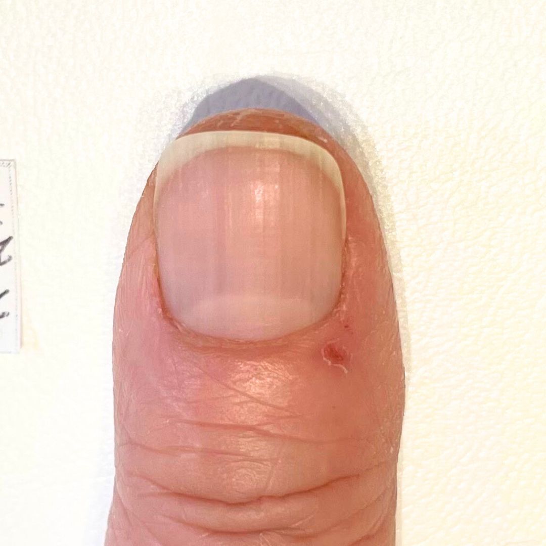 初回の写真 爪周りが乾燥して白くなっていて、爪表面は縦スジが目立っていました。爪のピンク部分の形はバラバラでした。 右手 左手 7ヶ月後の写真 4ヶ月たったくらいから、爪にツヤが出てきて爪のピンク部分の形が揃ってきて、爪 […]